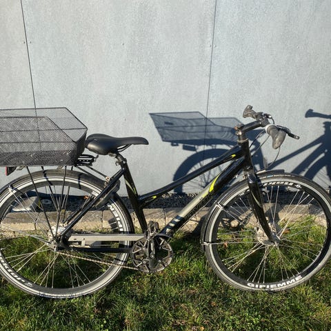 Batavus kvindecykel i sort og sølvfarve med 7 indvendige gear. Cyklen har en lav indstigning og er velegnet til daglig transport og fritid.