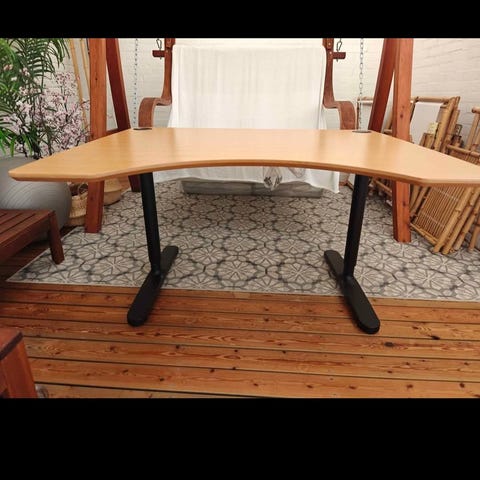 Du kan placere bordpladen på to forskellige måder. Hvis den afrundede form vender fremad, afhjælper det belastningen på dine underarme og håndled – og hvis den vender bagud, skaber den en åbning, som du kan føre ledningerne igennem.