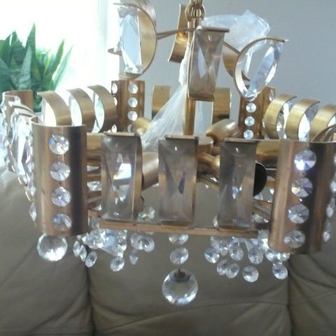 Fantastisk Krystal lysekrone Jupiter fra Orrefos af Carl Fagerlund med messingophæng