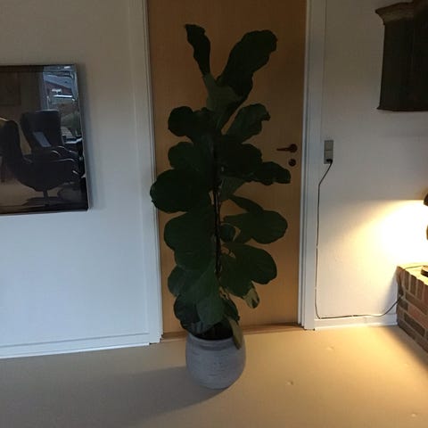 Meget flot 165 cm høj Violin Figen. Meget sund at se på og flot grøn farve. Inkl. sort potte. Afhentes i Mølholm efter aftale på 20376411