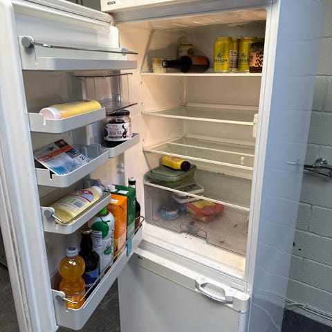 Bosch køle-fryseskab med kombineret køle- og frysefunktion. Produktet er i hvid farve og indeholder flere hylder og opbevaringsrum i døren. Velegnet til opbevaring af dagligvarer med både køle- og frysebehov.