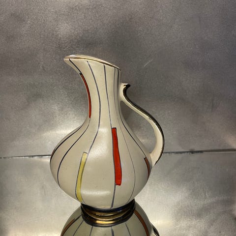 Tysk skål og kande, stemplet Germany. Kanden er 21 cm høj og skålen 21 cm i diameter. Slidt i guldkanten, men ellers fine uden skår eller revner. Sælges samlet til 150,- kr. Sendes ikke, men kan hentes på adressen.