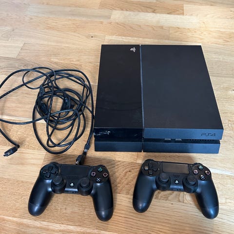 Playstation 4 spillekonsol med controllere og spil