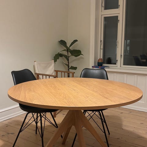 Spisebord Ø120 kommer med 2 tillægsplader så bordet kan forlænges til henholdsvis 160 og 200cm