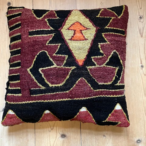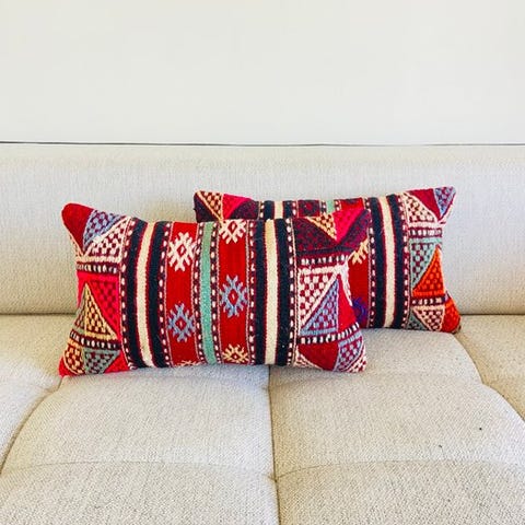 Skønne pudebetræk med mellemøstlige fornemmelser. Har 4 stk., og hvis du henter dem på adressen kan du få puderne indeni med gratis. Er fra røgfrit hjem. Prisen er for alle fire betræk.