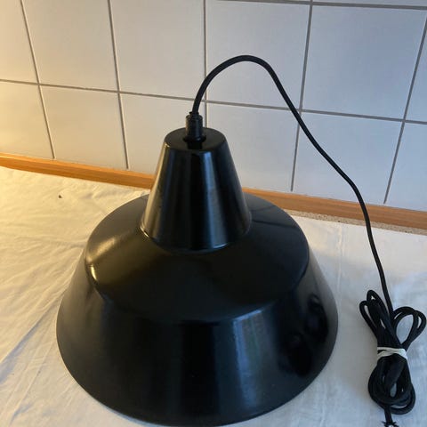 Rød værkstedspendel ( ikke Louis Poulsen ). Diameter 35 cm. Kan sendes.