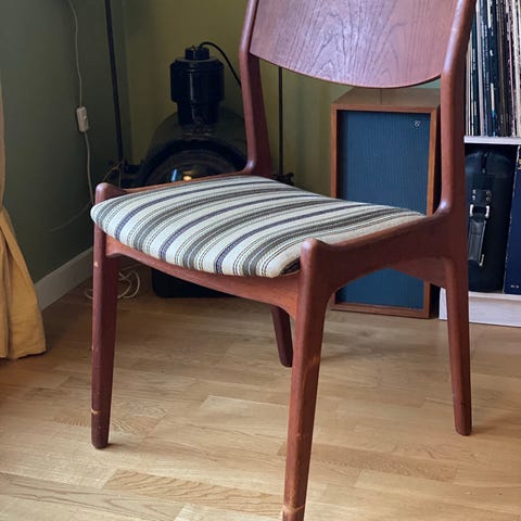 Johannes Andersen teak spisebordsstol med læderbetræk.