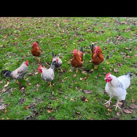 Har seks høns og to kokke til salg det er skånske blomster høns de er 25 uger er lige begyndt at lægge æg
