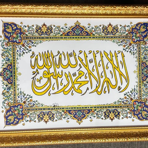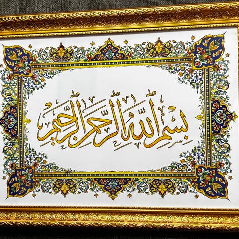 Værket er udført af mig i høj detaljegrad og giver et særligt og prestigefyldt islamisk udtryk. Den fine kalligrafi og den harmoniske komposition skaber åndelig dybde, minder dig om daglig læsning, og tilfører værdighed og eksklusivitet til rummet.
