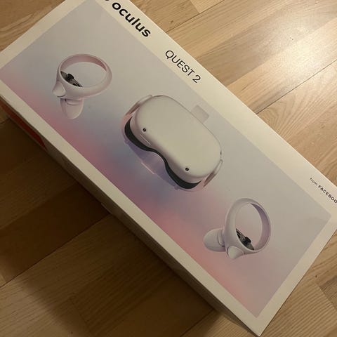 Oculus Quest 2 VR-headset med to controllere og oplader
