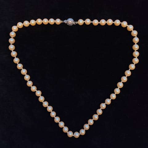 82 cm lang, perlerne er 0,6 cm.