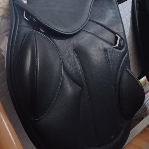 Bates Innovo Mono+ i kalveskind. Justerbare ergonomiske stigremlåse samt justerbare FlexiContourbloc gør det nemt at tilpasse sadlen helt individuelt til rytteren. Sadelen er med Luxe Leather kalveskind. I en flot mørkebrun farve. Der medfølger messingstigebøjler og remme i samme farve som sadlen. Der medfølger flere kopfjern, underlag, justeringsindlæg samt en kopfjernsmåler. Der medfølger også en scharf freedom gjorde i mørkebrun i str. 80. Jeg har brugt den til min unghest og været meget glad for den. Men da jeg har købt mig en custom sadel efter mine ønsker sælger jeg denne. Det eneste slid den har har i bunden af sadel klappen. Dette ydre stykke kan bestilles hjem og skiftes ved sadelmager. Sadlen har fået eftersyn samt tjekket puder ved sadelmager I februar 2025. Sædet er str. 0+ som svarer til en 16,5" – 17"