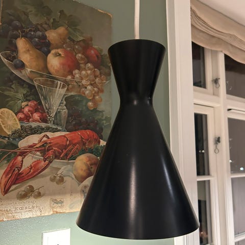 Pendlen er Ø13 cm og højde 18 cm og giver et dejligt blændfrit lys til et hjørner eller funktionelt ned over borde. E14 fatning