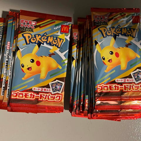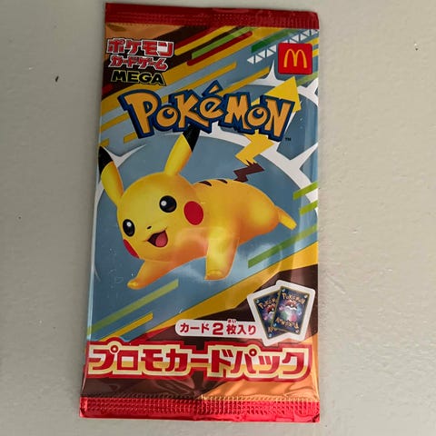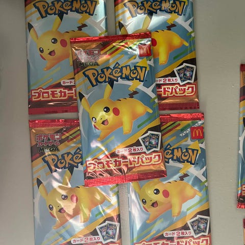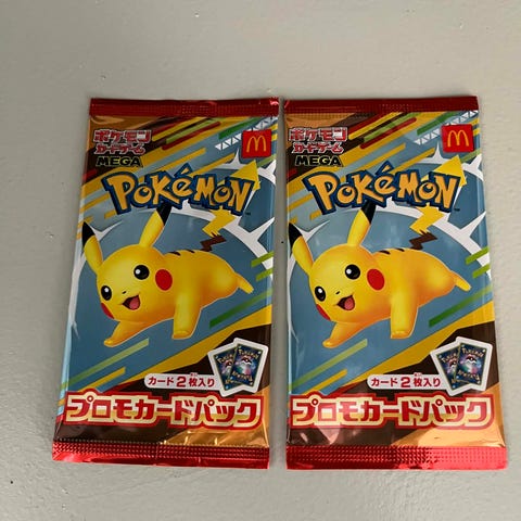 3x McDonald’s 2025 Japan Promo Pack med den burgerspisende Pikachu promokort.