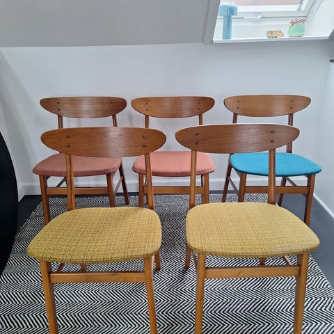 Stolene er solide og komfortable med klassisk dansk design og høj kvalitet. De kan stables og er derfor nemme at opbevare – velegnede til både spiseplads, mødelokale eller ekstra siddepladser.