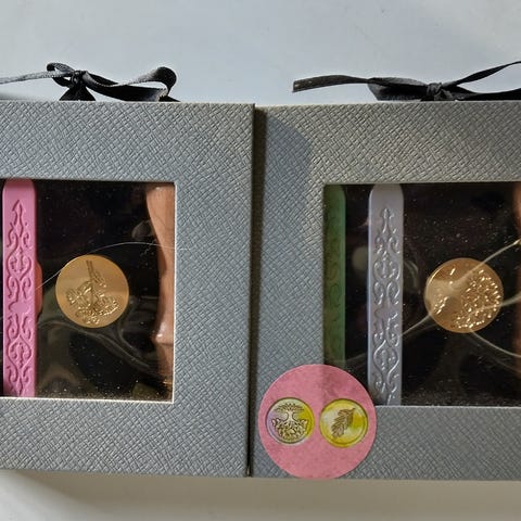 Samling af forskellige træstempler med forskellige motiver og tekst. Stemplerne er lavet af træ med gummimotiver, velegnede til dekoration og håndværksprojekter.