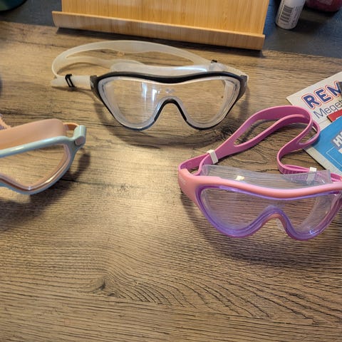 Lækre svømmebriller/dykkerbriller med skum ved øjnene og skriddutter på nakke stropperne.