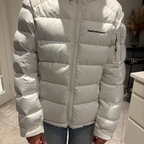 Peak Performance Vinterjakke i størrelse XS til kvinder. Jakken er sort og lavet med dun og polisher som materiale, hvilket giver isolering og varme. Velegnet til kolde vejrforhold. Det er en ski jakke med et flot snit
