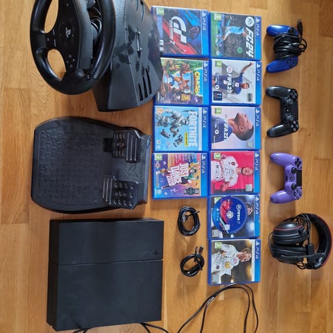 Playstation 4 med 2 controllere sælges da jeg ikke bruger den længere. Jeg sælger også headset og andet tilbehør som kan ses på første billede.