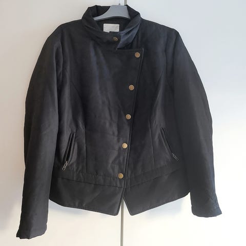 . Den har flere lommer og en lynlåslukning med trykknapper. Jakken har et justerbart taljebånd og en ståkrave.
