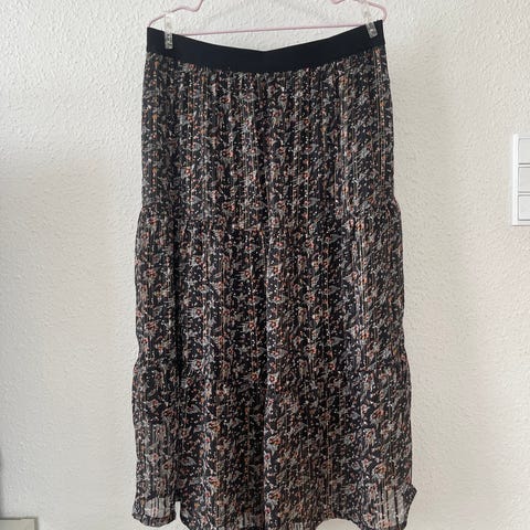 Skøn plissénederdel med glimmer, med elastik i livet, hvid underkjole, måler 67 cm (målt fra livet og ned), mave 37x2 cm, aldrig brugt