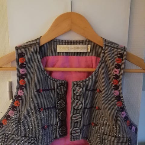 Farven er mørkegrå & vesten størrelse 34.