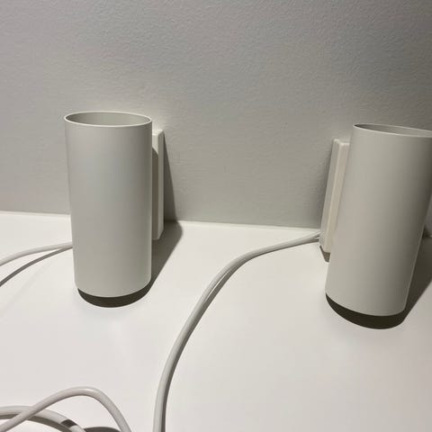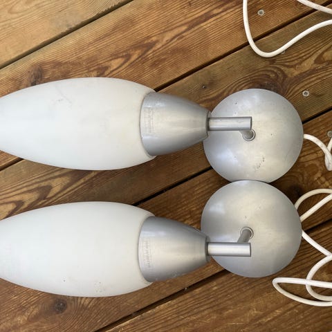 Skålformede væglamper. 3 hvide og 2 brune uplights. Prisen er for alle 5.
