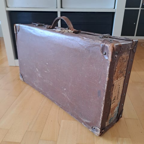 Gammel kuffert, mere end 50 år gammel, men præcis alder kendes ikke