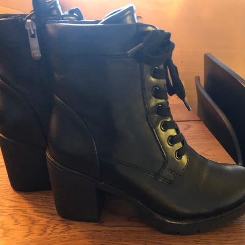 Lækre sorte ankelstøvler med høj hæl i ruskindslook. Aldrig brugt, da de er lidt for store til mig. Mærke: Jenny Fairy