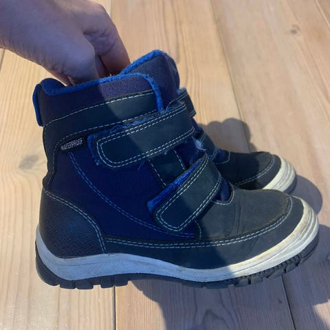 Unisex børnestøvler i størrelse 32. Vinterstøvler med tyk inderfor. Superpraktisk rigsretslukning til hurtig inde og udstigning. Er brugt en enkelt gang på skiferie