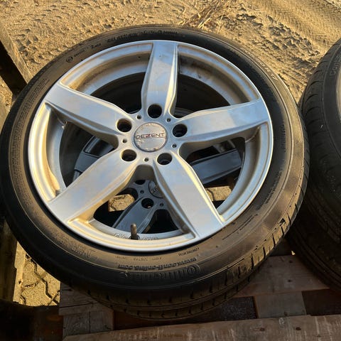 Sælger et flot sæt 17" alufælge med helt nye 205/45R17 M+S dæk, da de desværre er for små til min bil. Fælgene har en navstørrelse på 7,2 cm, fremstår næsten som nye, og dækkene er klar til montering. Et nemt og sikkert upgrade med et stilfuldt og moderne look, perfekt til dem, der søger kvalitet og et sæt klar-til-brug hjul.