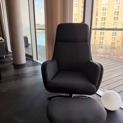 Lænestol med pude, som er udsolgt i Gentofte og København.