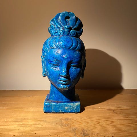 Turkis Buddha hoved figur i keramik