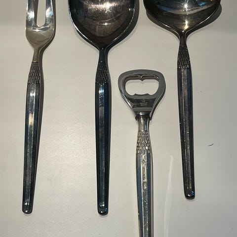 5 gafler 1 kniv 3 spiseskeer 1dessert ske 2 teskeer sølv plet cheri sælges samlet