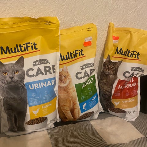 Kan købes samlet til 250kr eller hver for sig (200kr for vådfoder, 50kr for tørfoder).