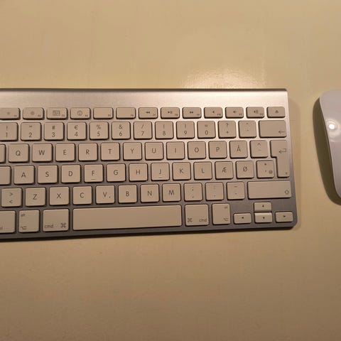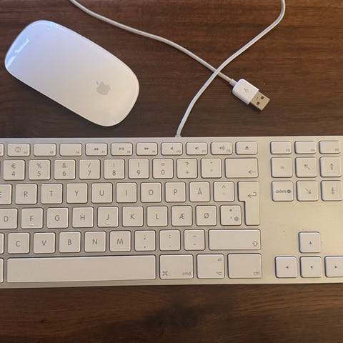 Apple tastatur og mus sæt i hvid farve. Tastaturet har et kompakt design med danske taster. Musen er trådløs og ergonomisk designet. Passer til brug med Apple-computere og andre kompatible enheder.