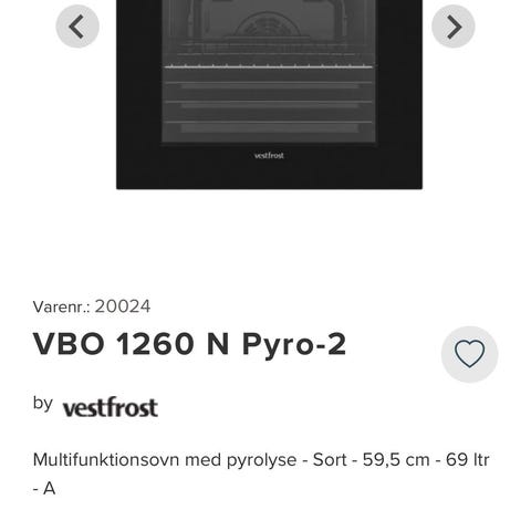 Vestfrost indbygningsovn VBO1260X PYRO - D17710