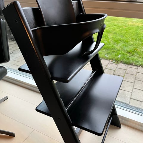 Trip trap stol med indsats og bakkebord i sort, rigtig pæn stand, se billeder