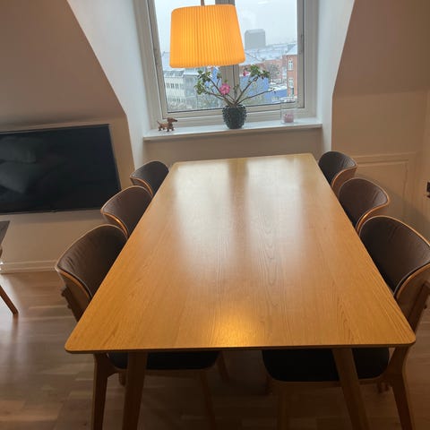 Egetræs bord med stole