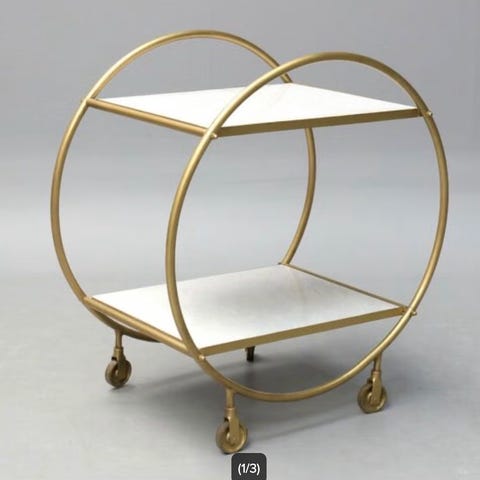 Barbord i marmor og messing. Hvid granit eller marmor bordplade. Underhylde og stel i massiv messing.