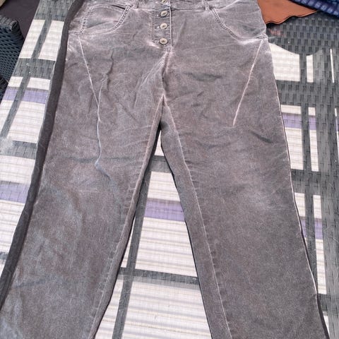 Prepair bukser i koksgrå med ribstof ned langs indersiden af buksebenet, der gør dem lidt stretch samt skrålommer foran.