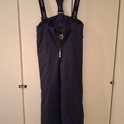 Hummel skibukser til børn i størrelse 134, unisex model. Bukserne er sorte og lavet af polyester. Designet med justerbare stropper og elastik ved benene for bedre pasform og funktionalitet ved udendørs aktiviteter. Fra røgfrit hjem. Sender gerne - allerede i morgen 😊