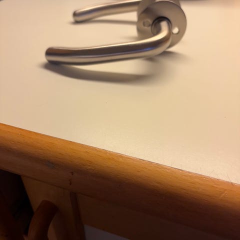 Håndtag i rustfrit stål. Sættet indeholder flere håndtag og ekstra dele. Materialet er rustfrit stål, velegnet til montering på døre
