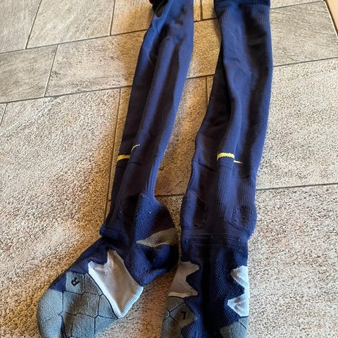 Fodboldstrømperne er str S/M de er 15 cm lange i foden 30kr købt i Barcelona
