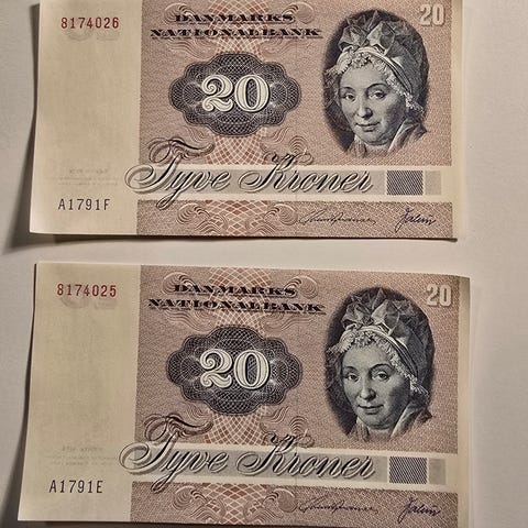 2 stk 10 kr fra 1972 sælges samlet