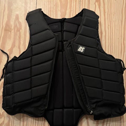 Saferide Ridevest i størrelse 8, sort farve. Ridevesten er designet til at give beskyttelse ved ridning og er polstret for at absorbere stød. Den er velegnet til ryttere, der søger ekstra sikkerhed under ridning.