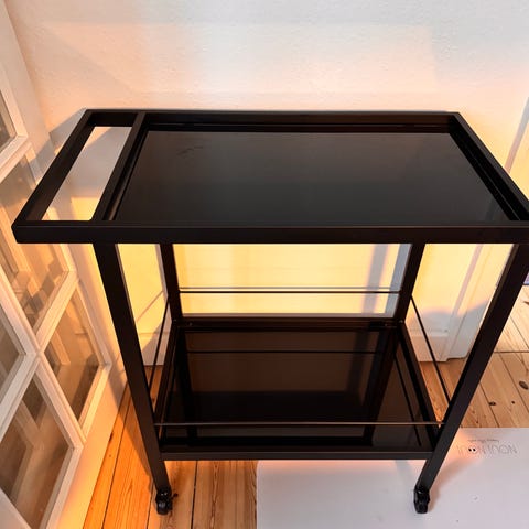 Med hjul og spejlhylder. Målet på hylder 33x43