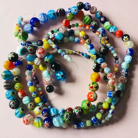 SUPER SMUKKE MILLEFIORI perler til din egen smykkefremstilling. Perlerne er 4x6 mm og der er 30 ASSORTEREDE PERLER i posen til 40 kr. Perlerne er nye og ubrugt