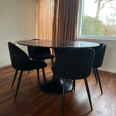 Marmor spisebord sæt med 6x velour stol, købt fra Sverige, købt for 8000kr den er i god stand.