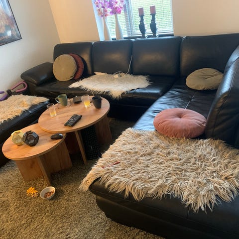 God kvalitet der holder formen og både har flot front og bag. Slid på én flade, der ikke er forsøgt udbedret.